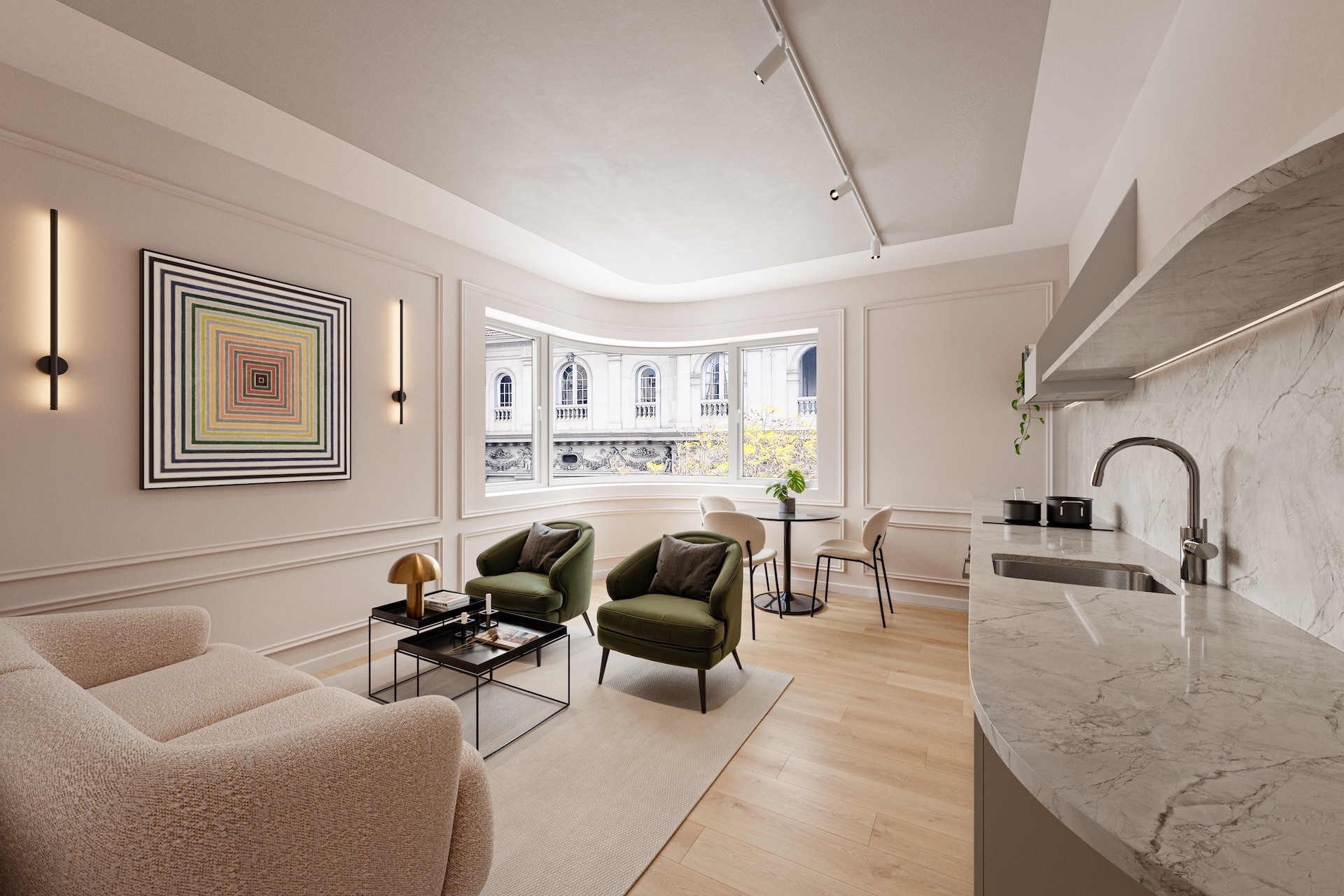 Descubre un lugar en el centro histórico de Santiago, con impresionante vista al Parque Forestal y acceso inmediato a la vida cultural de Lastarria.